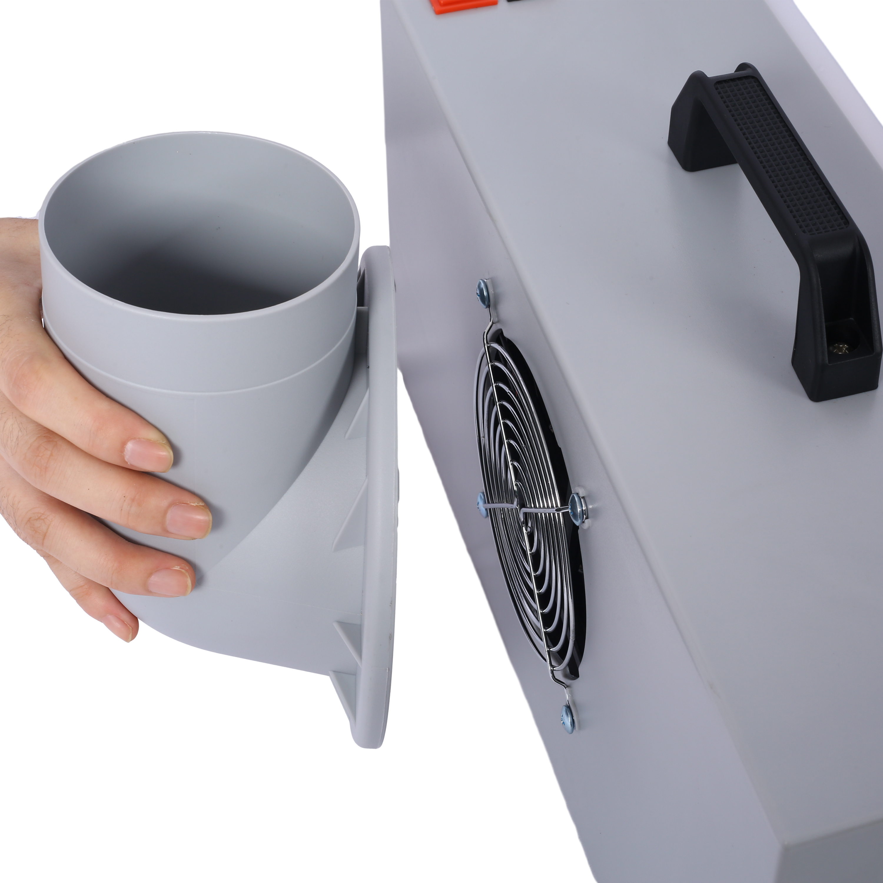 Novel construction, beauty in shape, smart in body form. It can fold and deploy,easy for moving work It can use one machine or combine two machines without tools. Full transparent work booth,it helps to control the spraying Storage extract fog, and control the spraying fog extend effectively The light on/off switch can awake the customer to turn off the booth in time Low noise motor, high anti-burnt filter net Specification: Input power: AC110V 60HZ Motor: DC12V/1.6A Air flow: 4m³ /min Hose Length: 0.7-1.7m Lumen: 1200LM Unfolded size:48x42x36cm Folded size:42x15x25cm