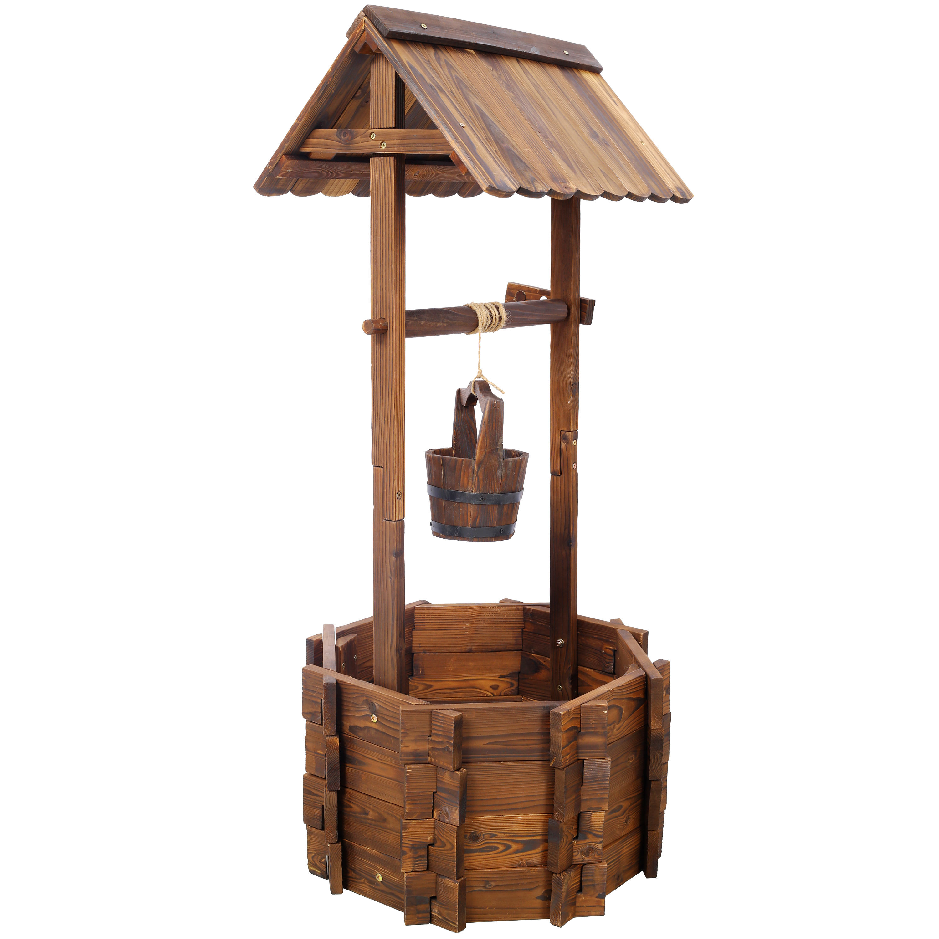 • Durable Construction: Crafted from solid fir wood, this well is built to withstand the elements while maintaining its rustic appeal with a weathered brown finish.